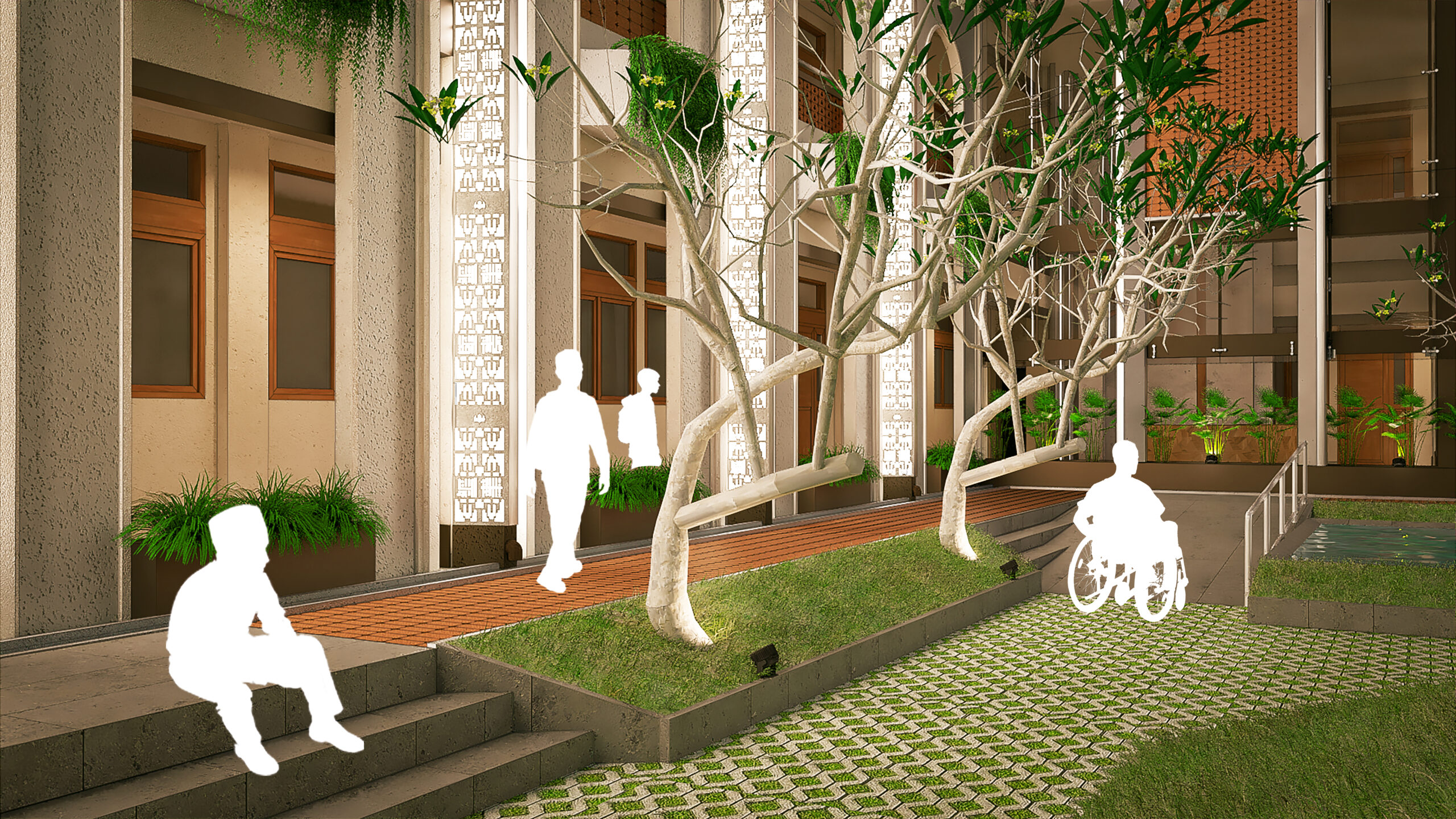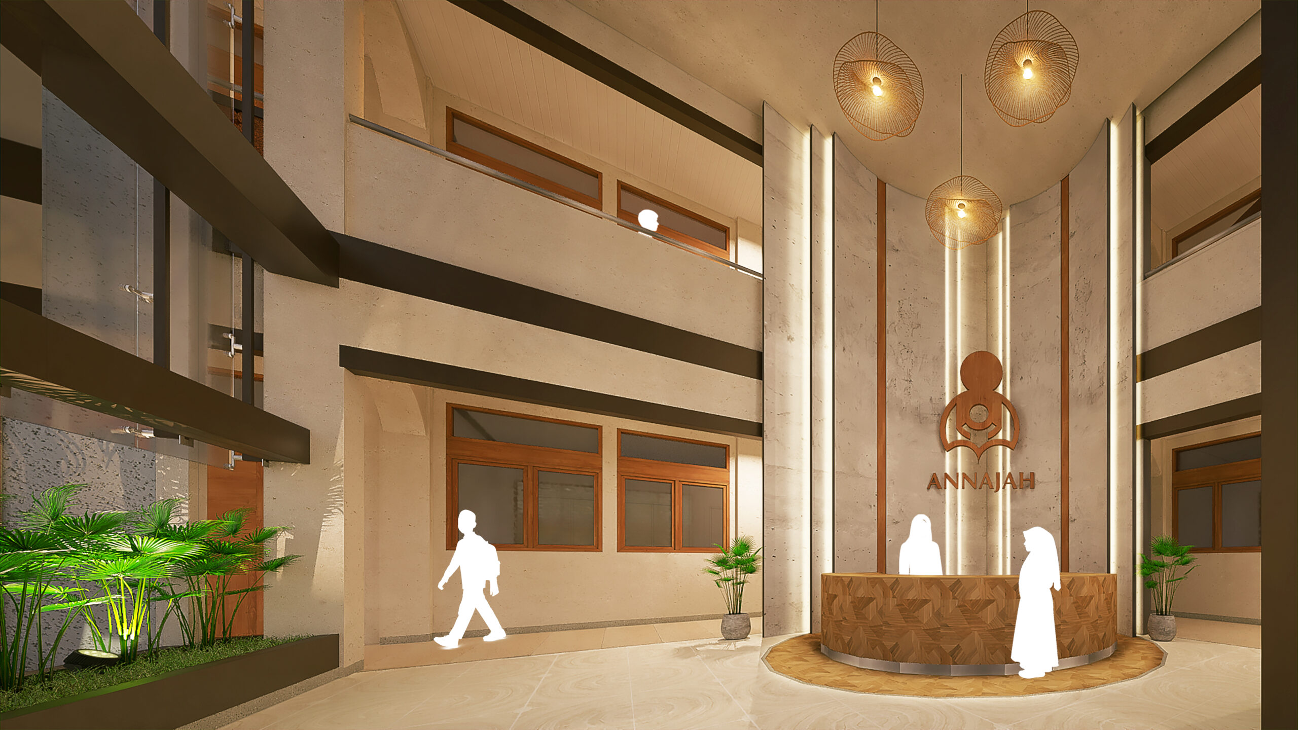 The architecture embodies radiant devotion as as islamic boarding school. Its expression is honest and deliberately modern. Classical materials are used twistedly creating fresh form. The rhythm of columns echoes the mengkudu batik spirit as the design responds to Anyer’s coastal topography. Natural light and ventilation are carefully optimized in repetition while dissolving the mass into a calm coastal rhythm.