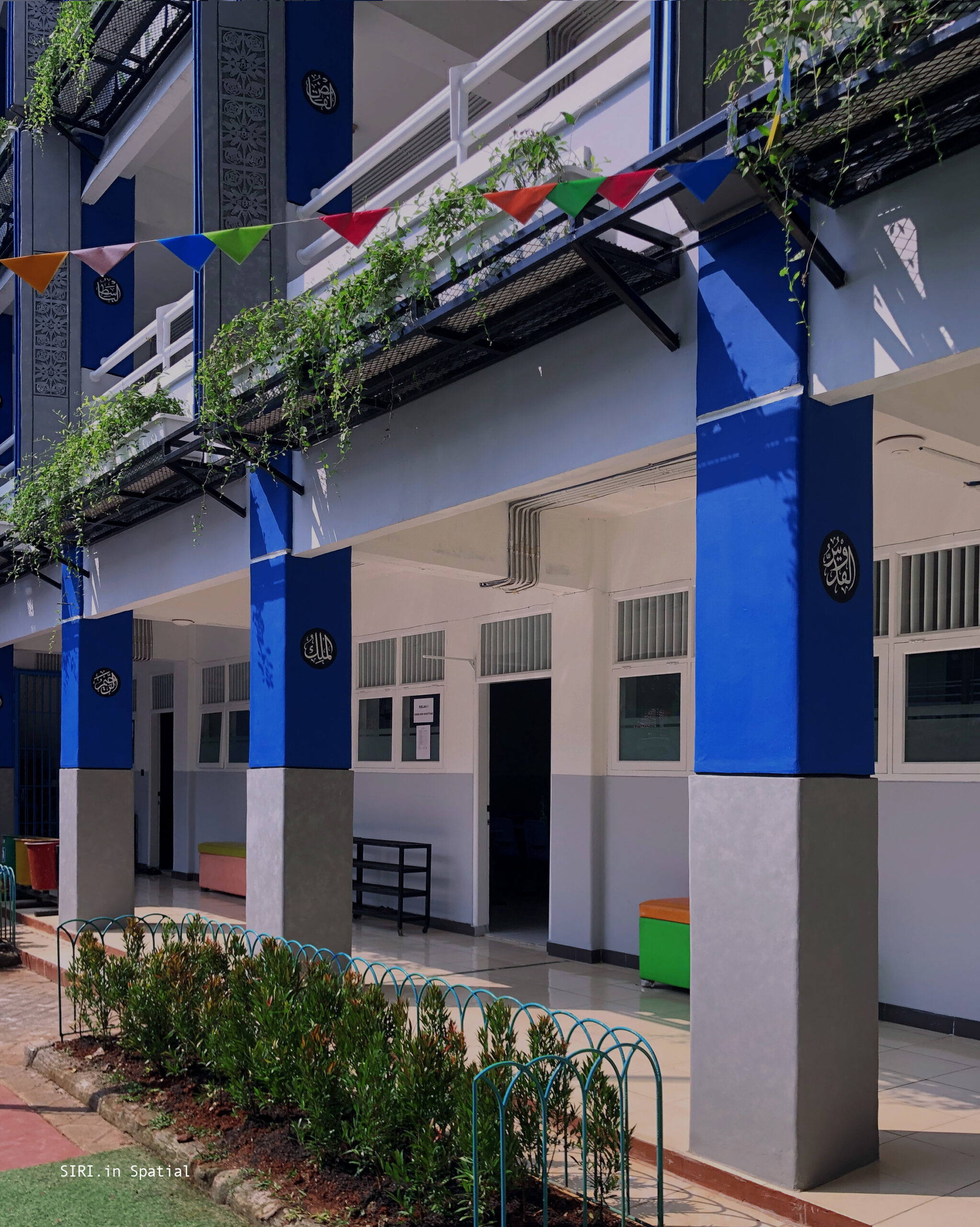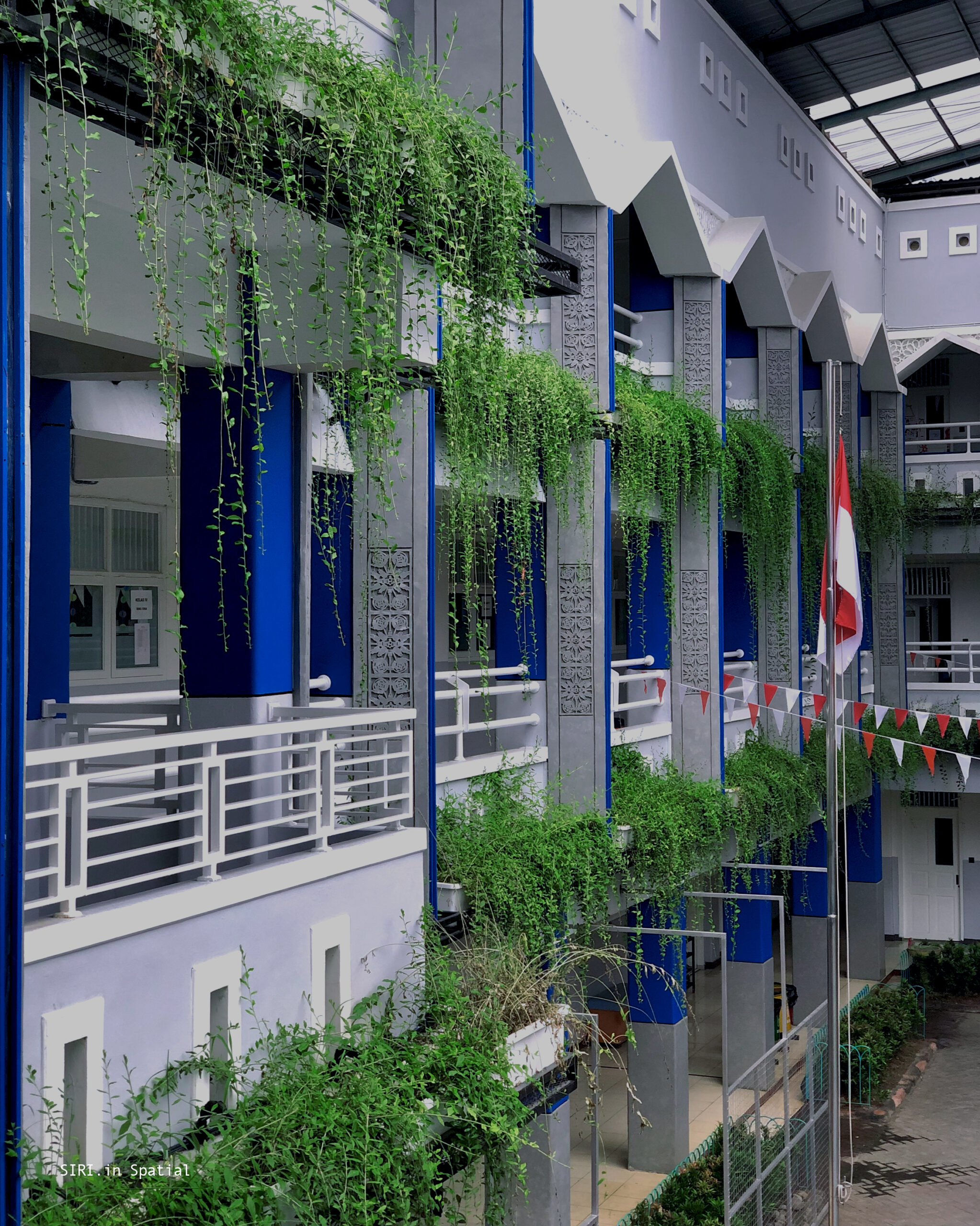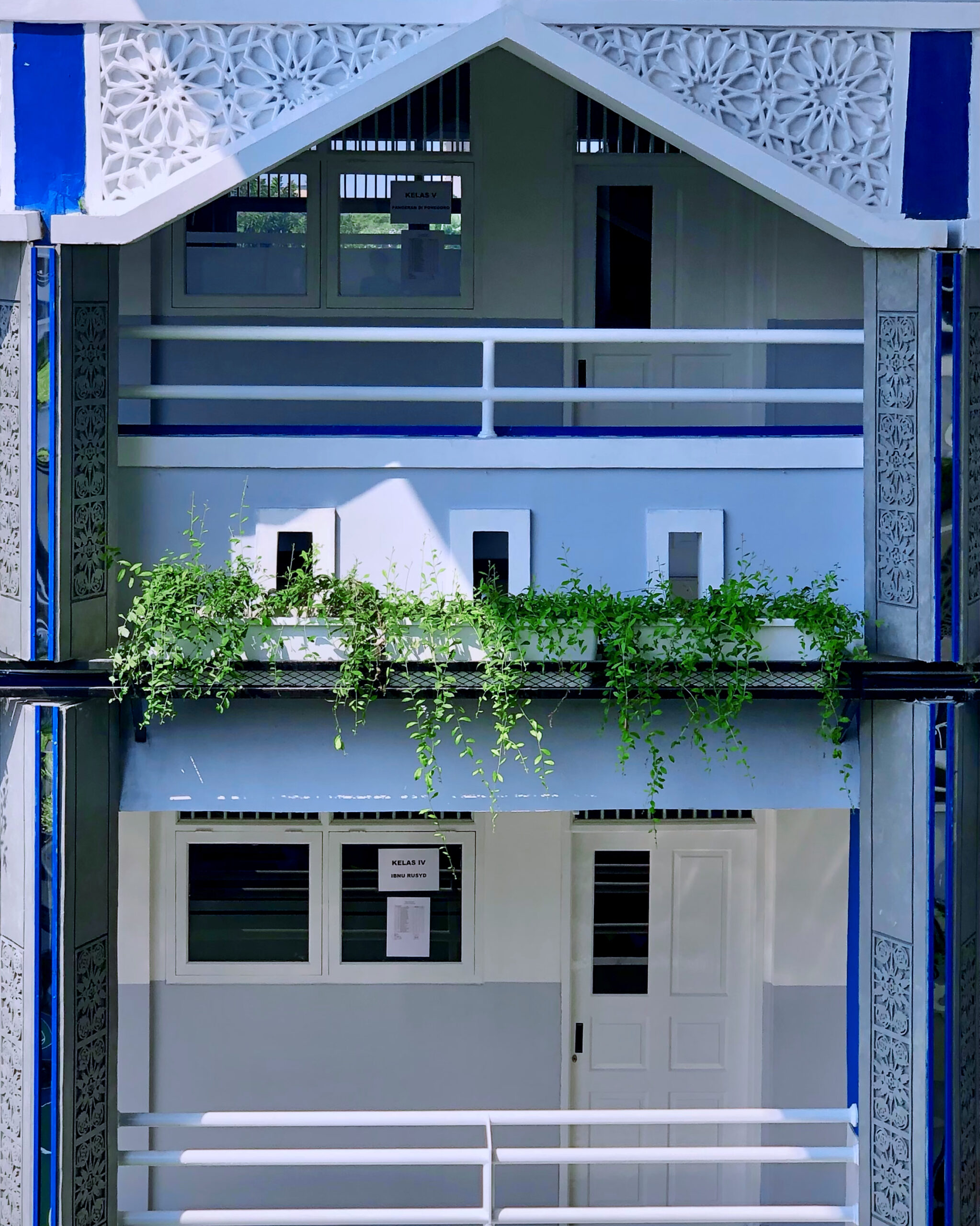 Batik becomes a meaningful design element. The mengkudu motif embodies the philosophy of “tekun dan sabar itu kudu. ”It gives the school façade cultural depth and narrative. The motif teaches diligence and patience. It also reflects perseverance in life. Combined with vegetation, the façade gains visual balance. Structured batik patterns contrast