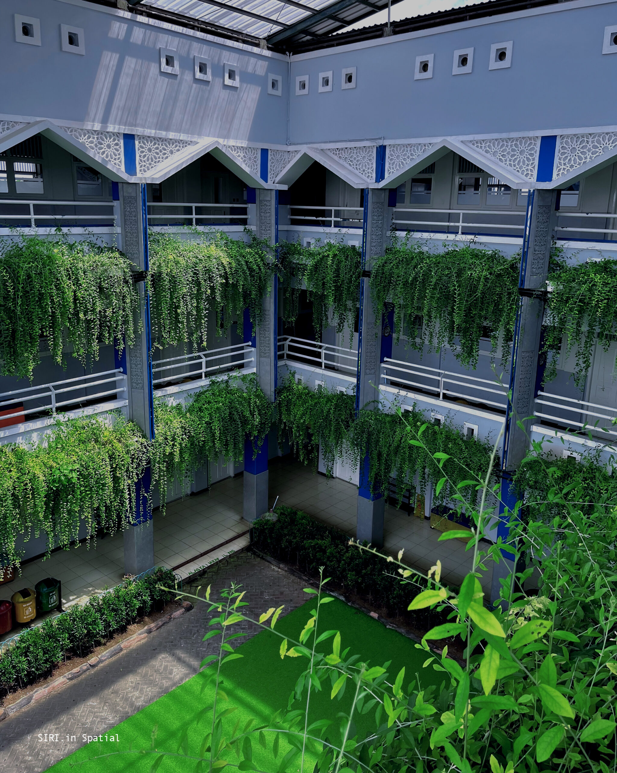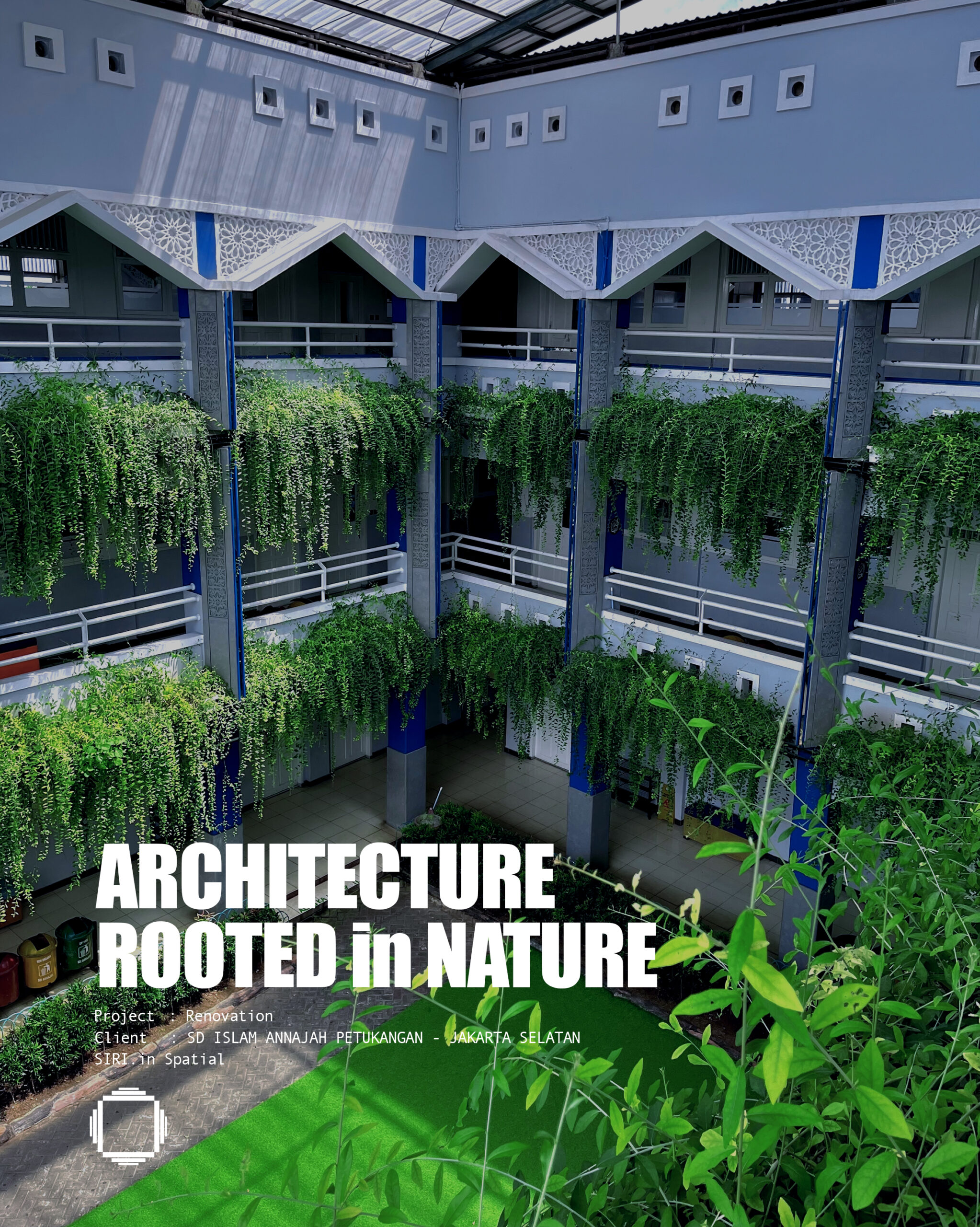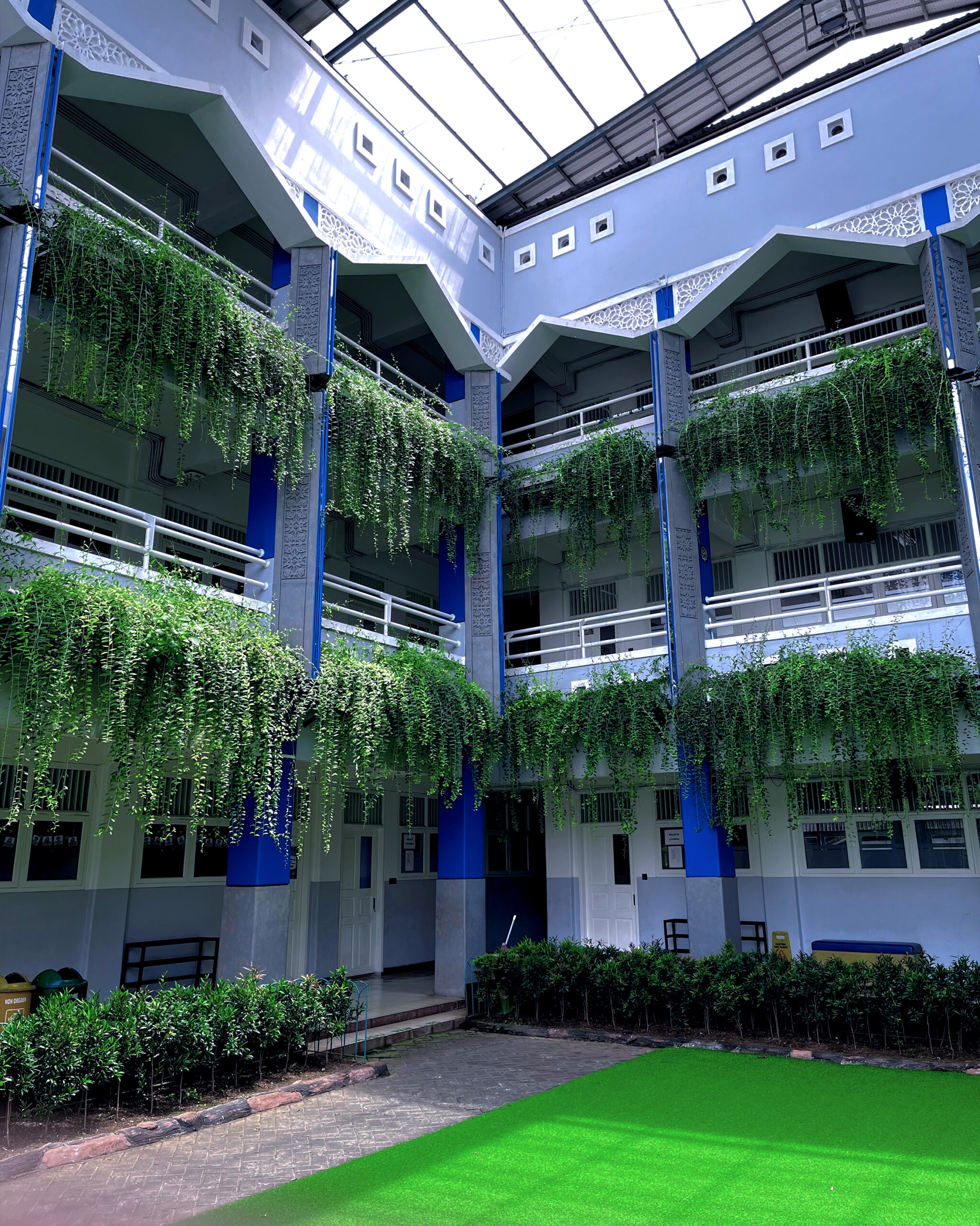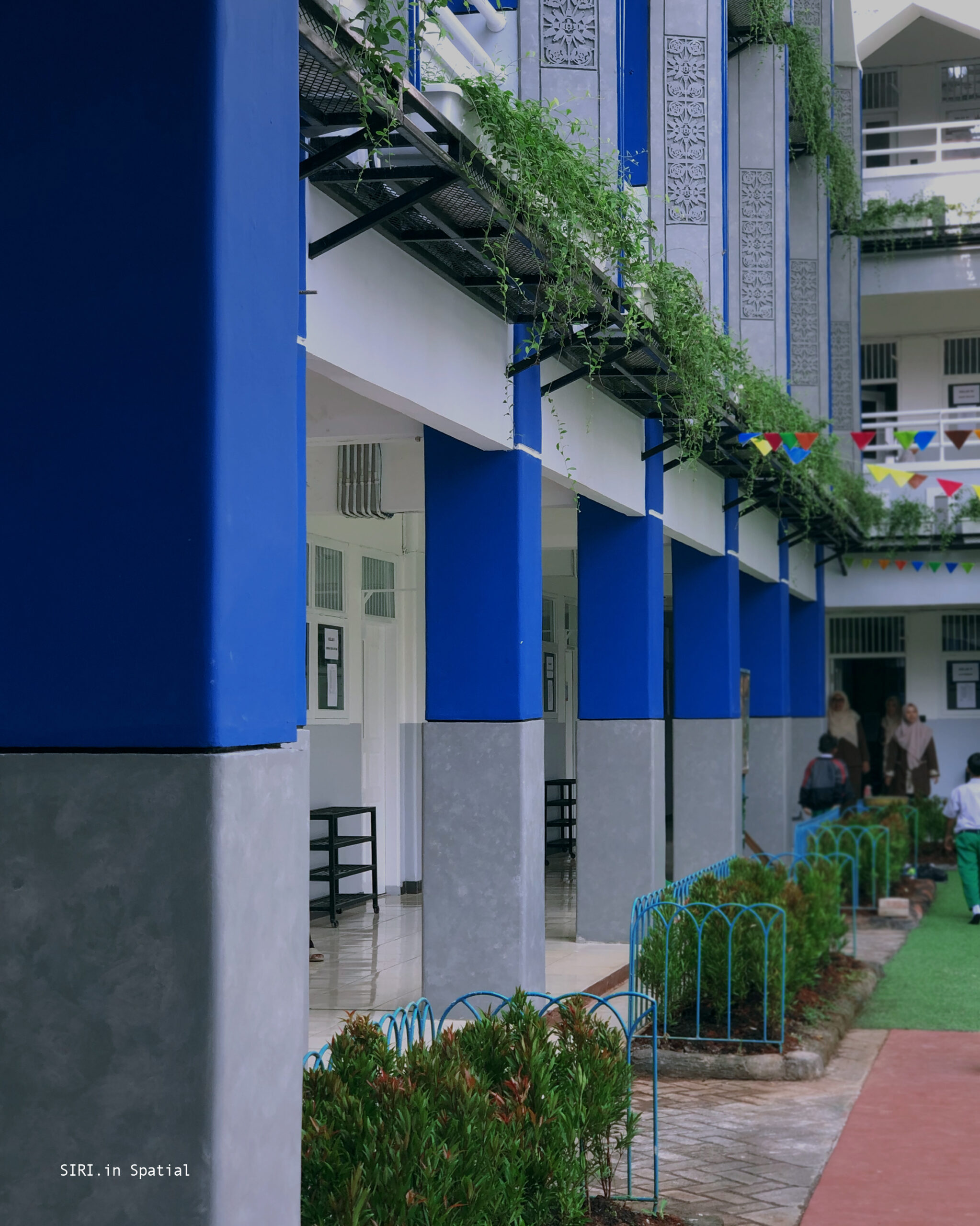 Batik becomes a meaningful design element. The mengkudu motif embodies the philosophy of “tekun dan sabar itu kudu. ”It gives the school façade cultural depth and narrative. The motif teaches diligence and patience. It also reflects perseverance in life. Combined with vegetation, the façade gains visual balance. Structured batik patterns contrast