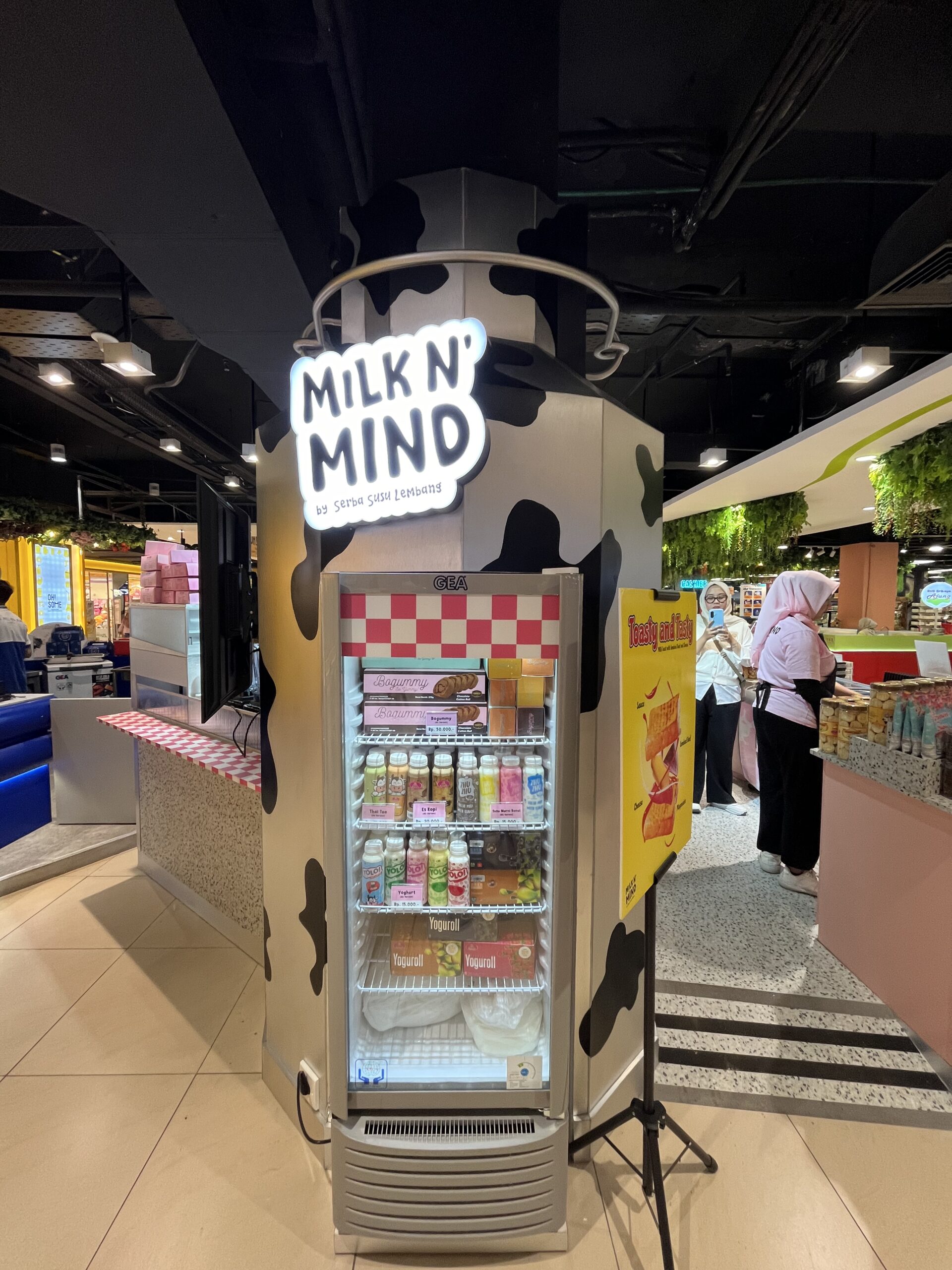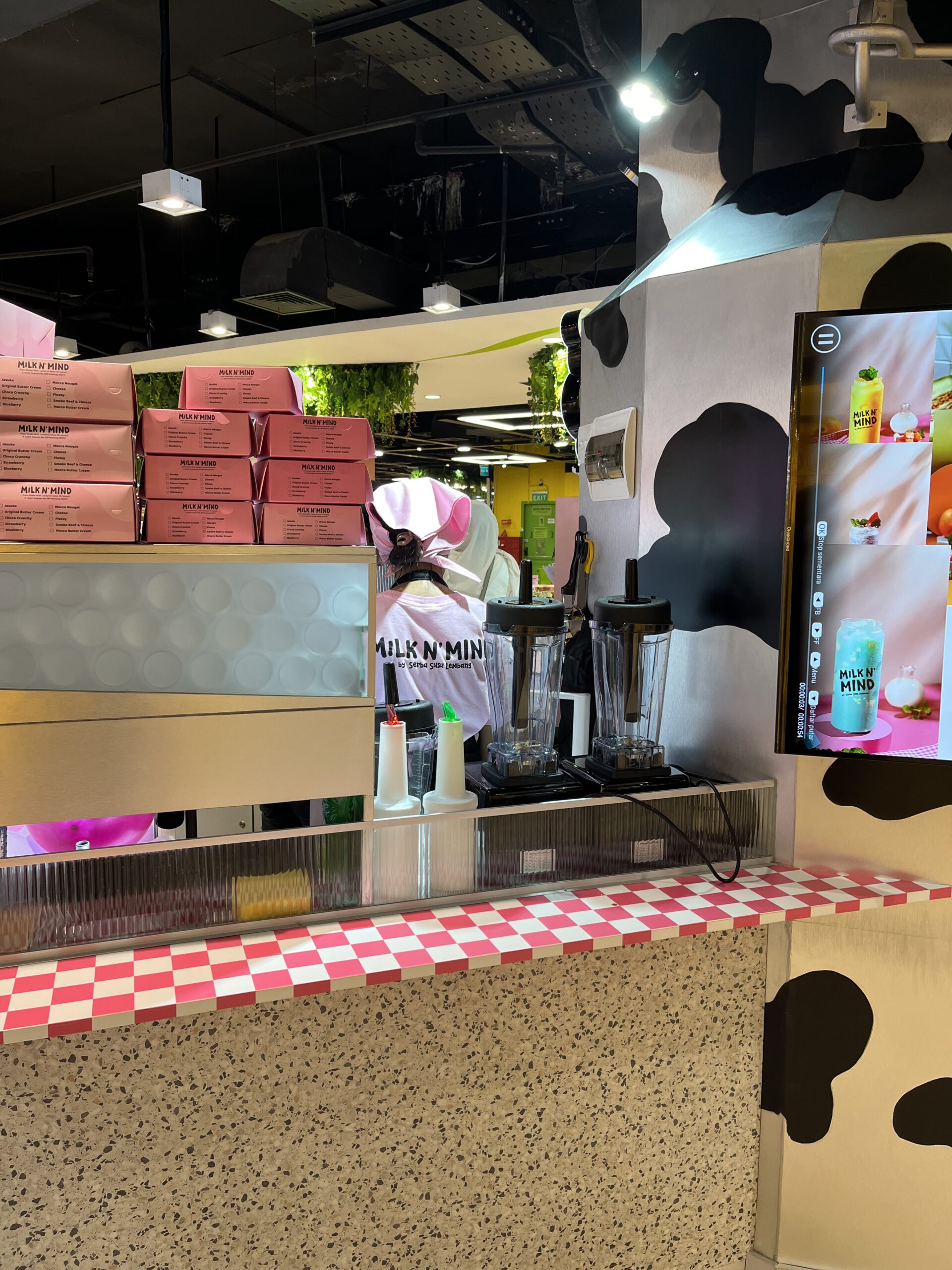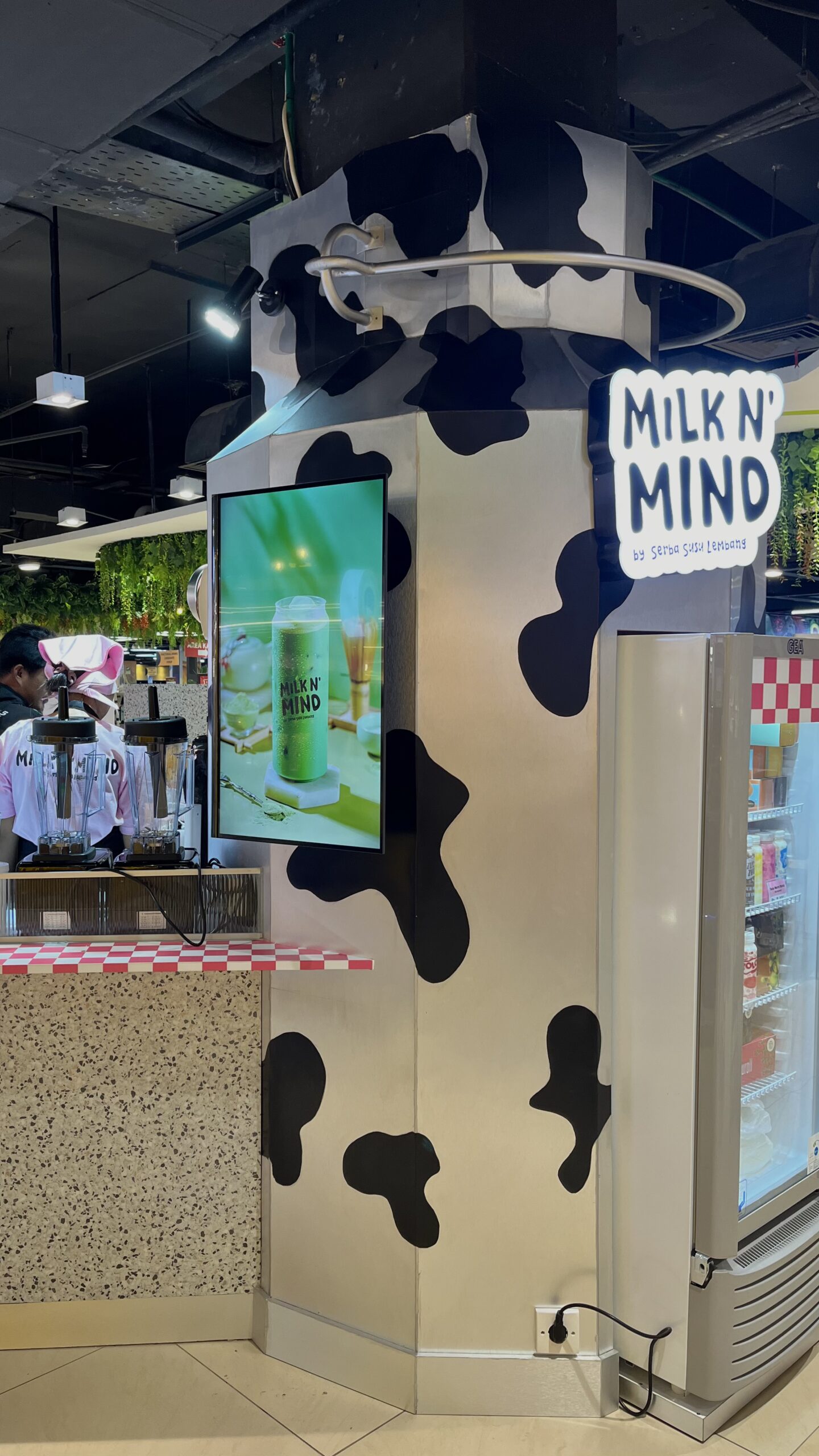Born as a playful pop-up store for local souvenirs, the space invites curiosity through bold graphics and cheerful forms. Inspired by the joy of gifting, the design celebrates small discoveries and interactions. Bright colors, friendly signage, and expressive patterns create a fun, approachable atmosphere. It tells the journey of milk, from fresh cow to crafted treats visitors can experience and take home. The compact kiosk becomes a lively pause point, turning everyday shopping into a memorable moment.